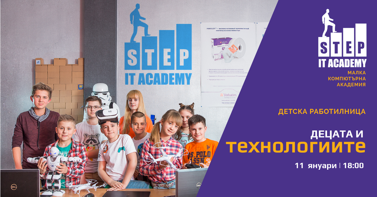 На 11-ти януари от 18:00ч организираме вълнуваща безплатна работилничка за деца „Децата и технологиите“. Събитието ще се проведе в Международна Компютърна Академия IT STEP, етаж 5. В нея ще могат да се включат всички деца между 7 и 12 години, които имат интерес към новите технологии и искат да разберат как работят те.